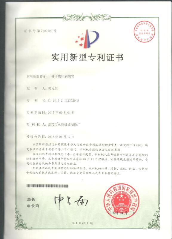 实用新型专利证书